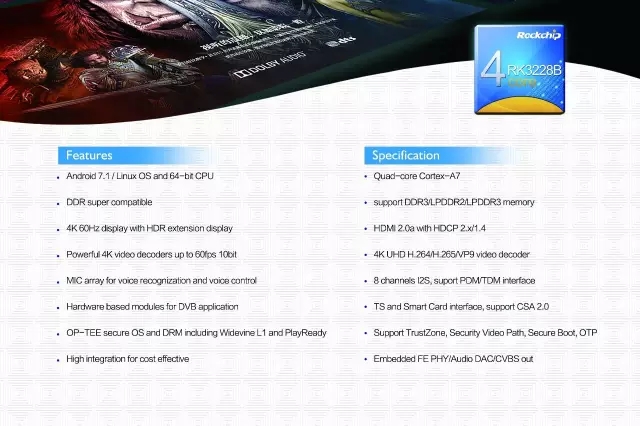 Rockchip在CCBN2017展出搭載四核超優(yōu)性價比的機(jī)頂盒芯片產(chǎn)品RK3228B以及高性能的機(jī)頂盒芯片產(chǎn)品3228H。方案亮點(diǎn)涵蓋: