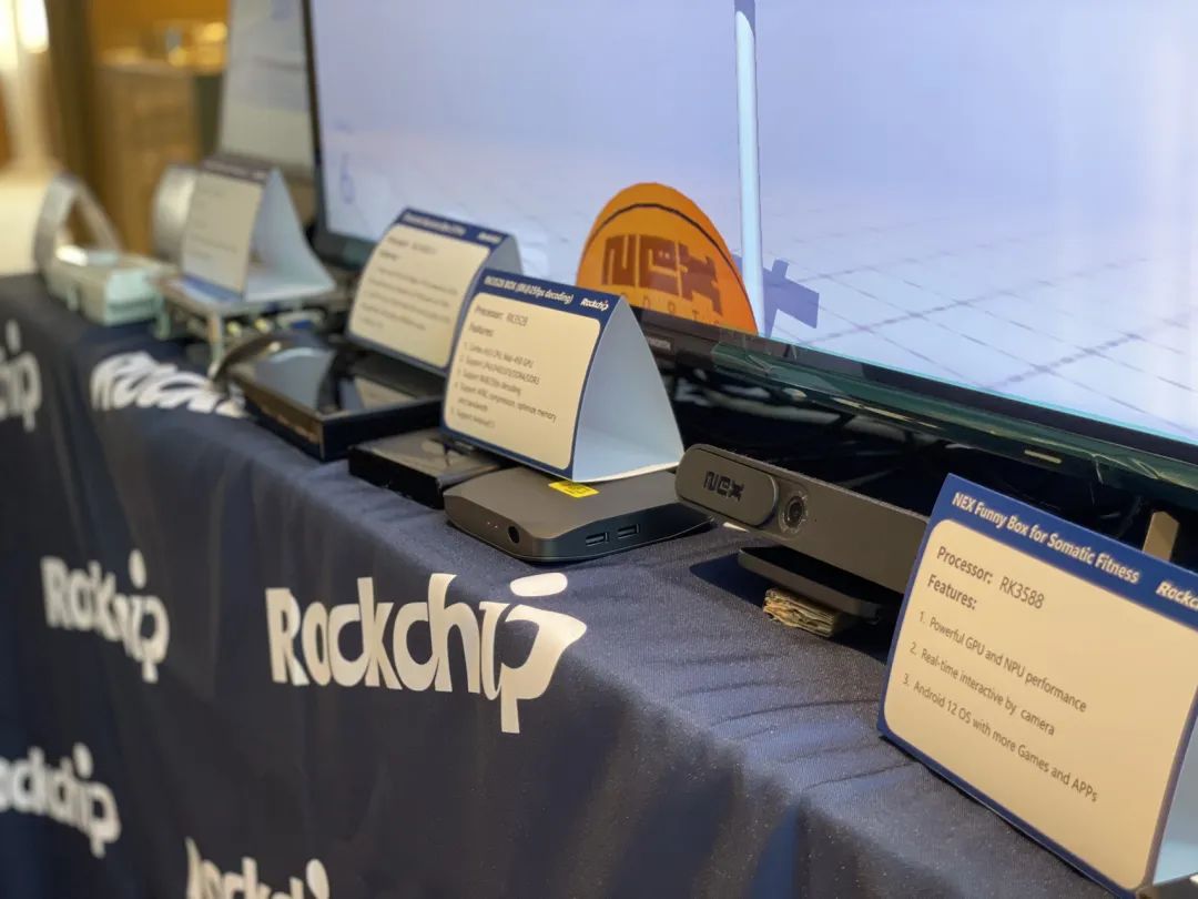 在機(jī)器視覺(jué)展區(qū),展示了搭載RK3588的邊緣計(jì)算服務(wù)器,提升各視覺(jué)應(yīng)用領(lǐng)域的AI算力;還展示了搭載新一代機(jī)器視覺(jué)方案RV1106/03的IPC產(chǎn)品,首幀穩(wěn)定圖像小于200ms,支持HDR,超低功耗;同時(shí),還展出了采用RV1126的可視門(mén)鈴,支持雙攝像頭,2K HDR及雙向音頻等特性;以及搭載RK3588的游戲盒子,可通過(guò)攝像頭進(jìn)行實(shí)時(shí)交互,用戶可體驗(yàn)流暢的體感游戲。