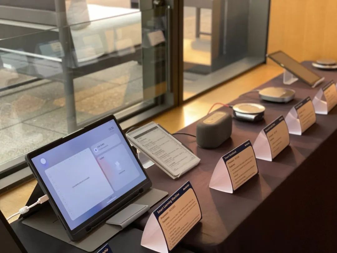 在消費(fèi)電子展區(qū),展示了瑞芯微在智慧辦公、智慧教育、智慧家居的芯片應(yīng)用,展示了搭載新發(fā)布的AIoT通用算力平臺(tái)芯片RK3562的平板電腦,該芯片采用4核A53+G52架構(gòu),內(nèi)置1TOPS算力,擁有4K解碼能力,可滿足眾多AI智能硬件產(chǎn)品。