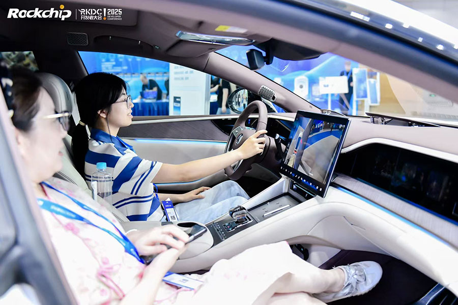 汽車電子展區(qū),瑞芯微以車載應用全場景AI賦能之勢亮相,聚焦智能座艙、車載音頻、車載視覺、汽車域控等核心領域,覆蓋前裝及后裝、商用及乘用的豐富應用形態(tài),展出近百件最新產(chǎn)品包括汽車中控、3D液晶儀表、移動扶手屏、頭枕互動屏、掌紋掌靜脈識別、吸頂娛樂屏、車載VR、部標機、外置功放、桌面AI機器人等等。